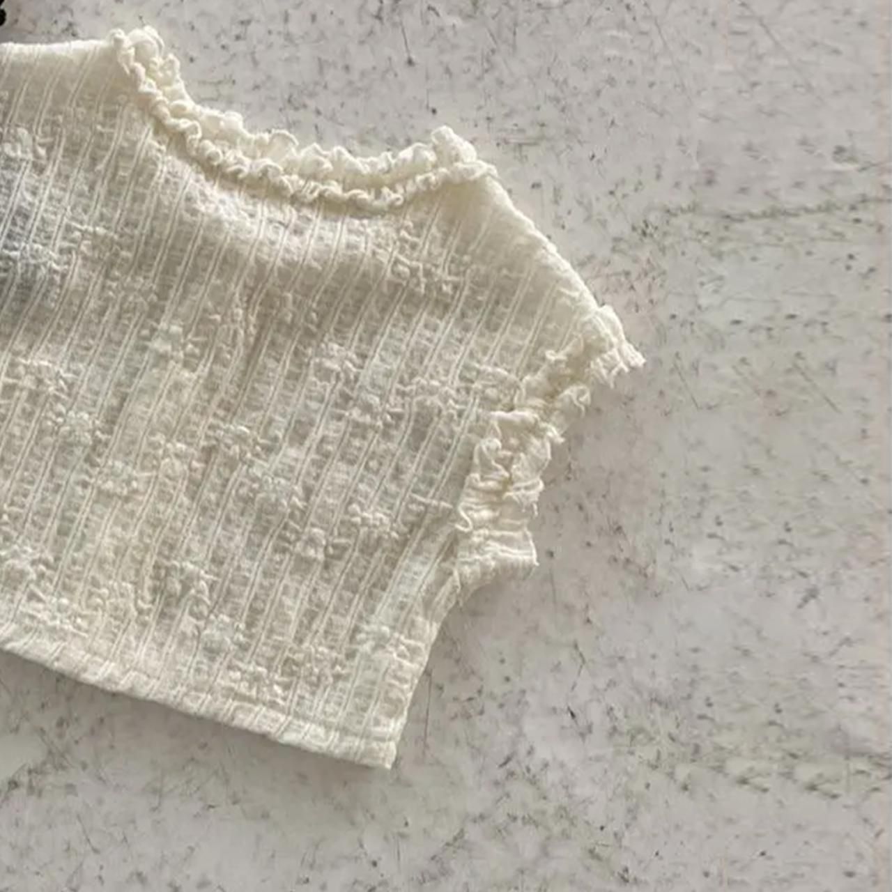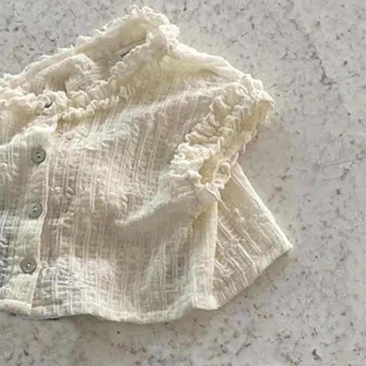 襟元と袖口のクシュクシュが可愛いブラウス型カーディガン