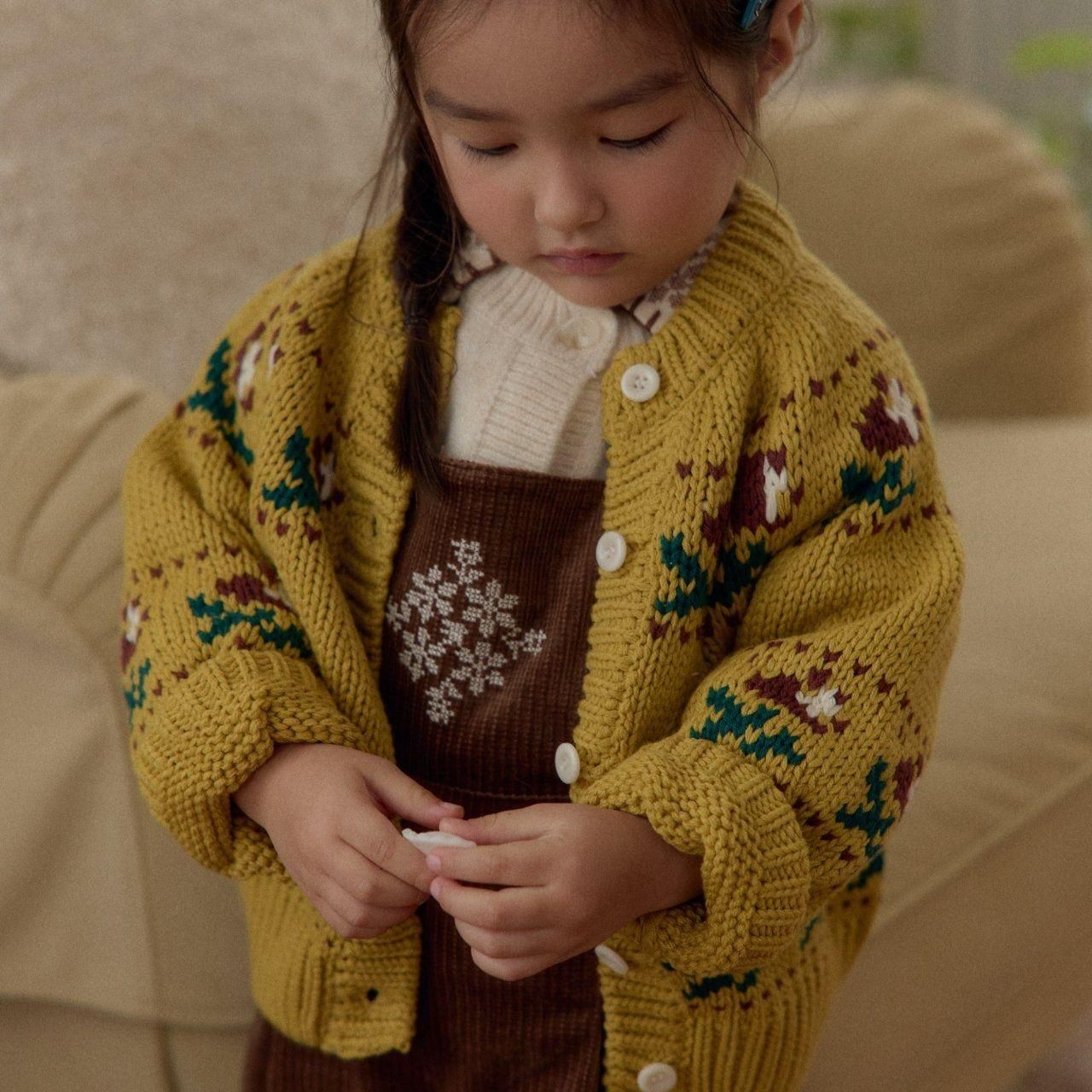 Bella 94cm, 13.5kg wearing cardigan size M