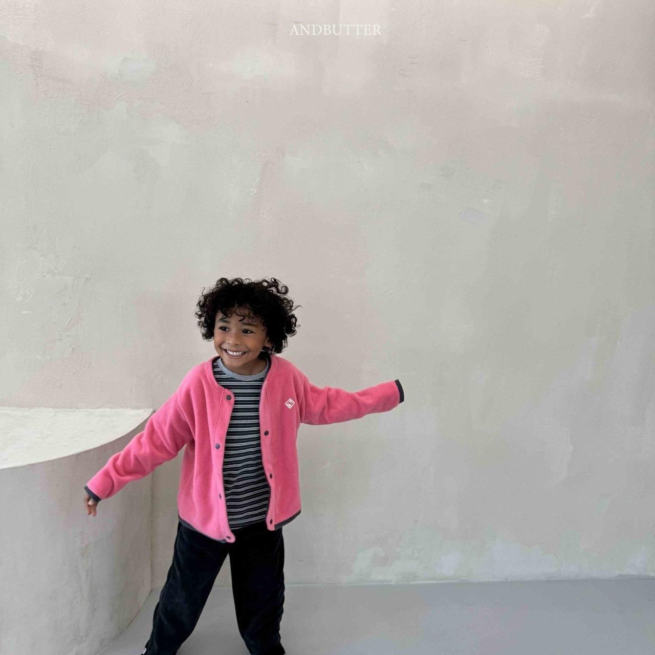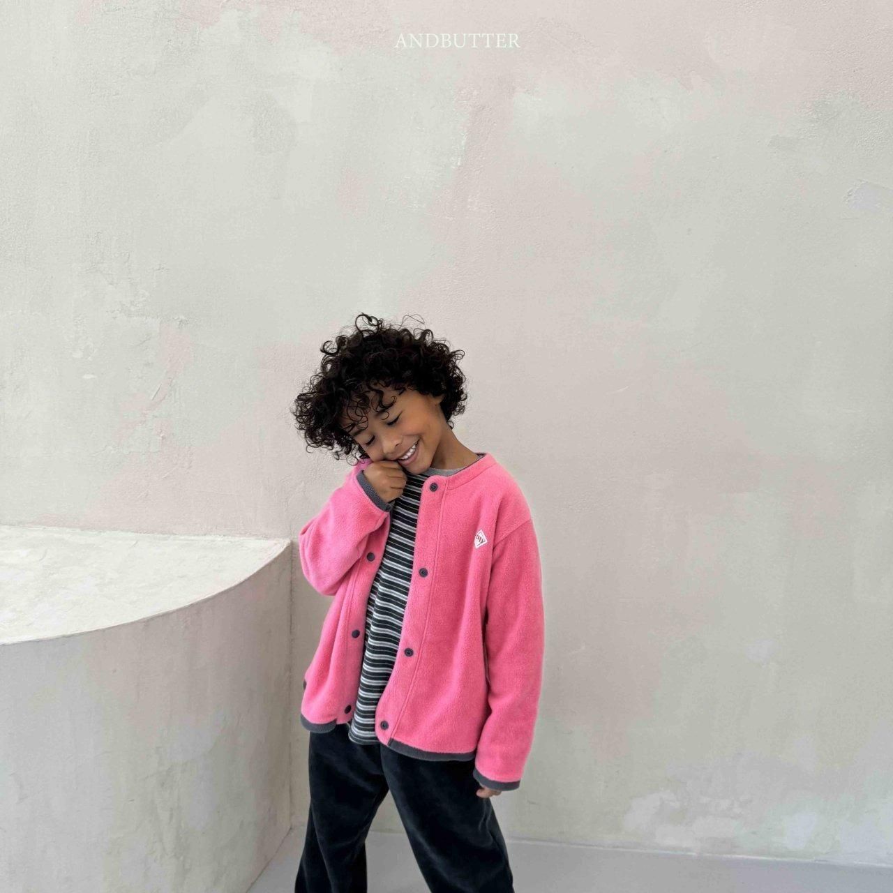 2025w1【ANDBUTTER】5:(100cm~140cm)フリースミックスカーディガン /* H11