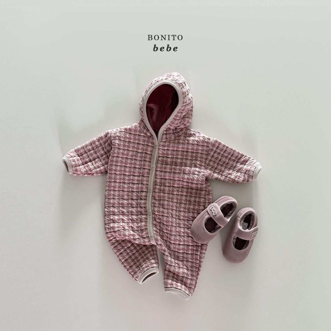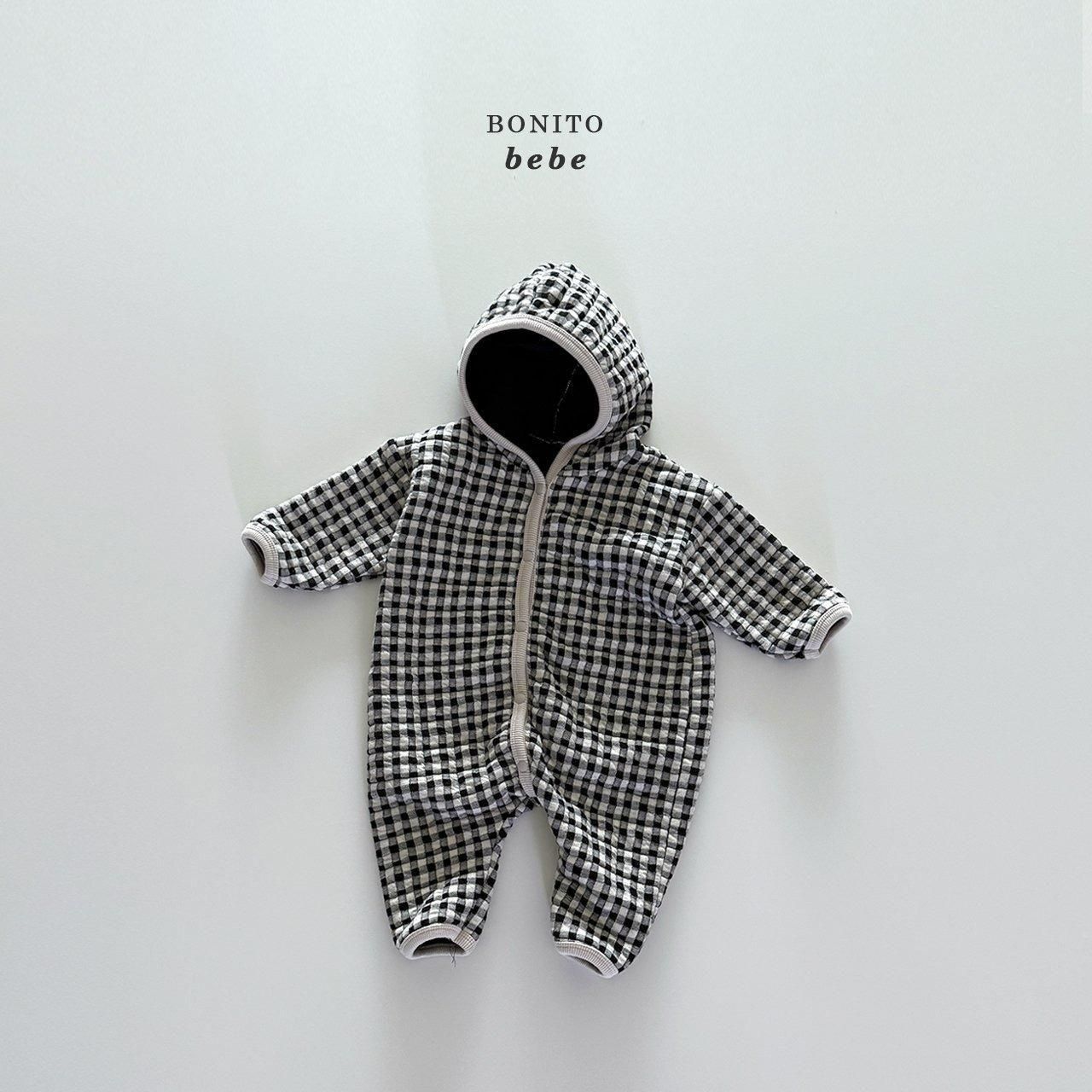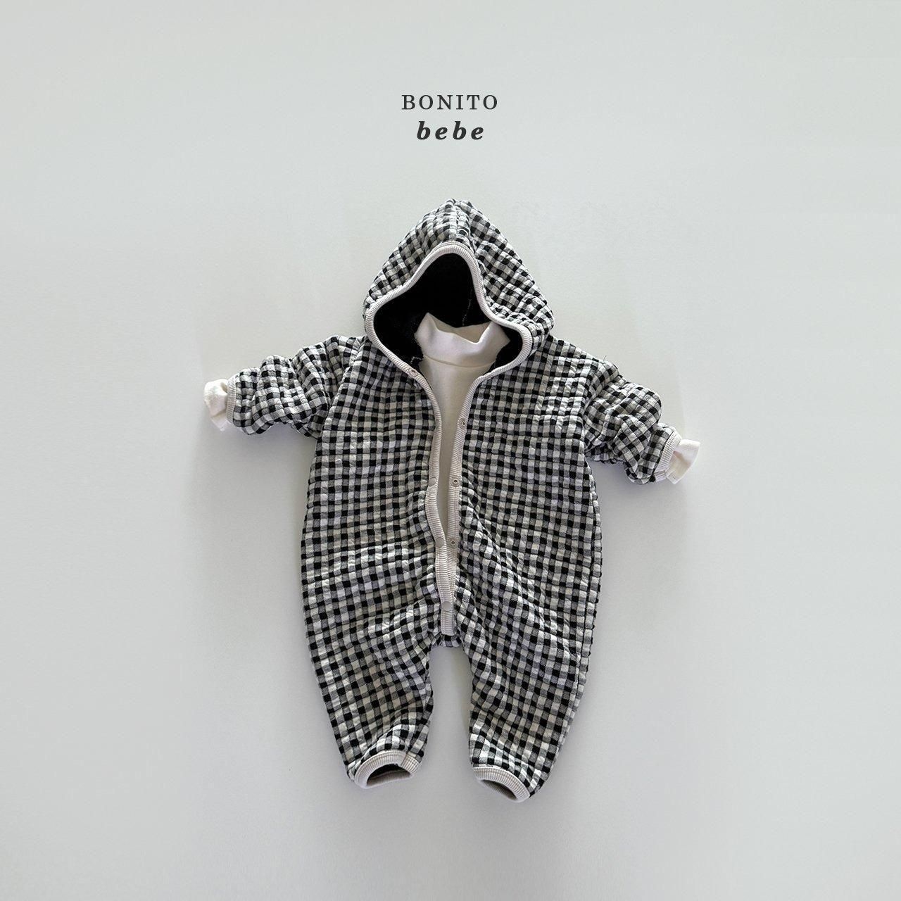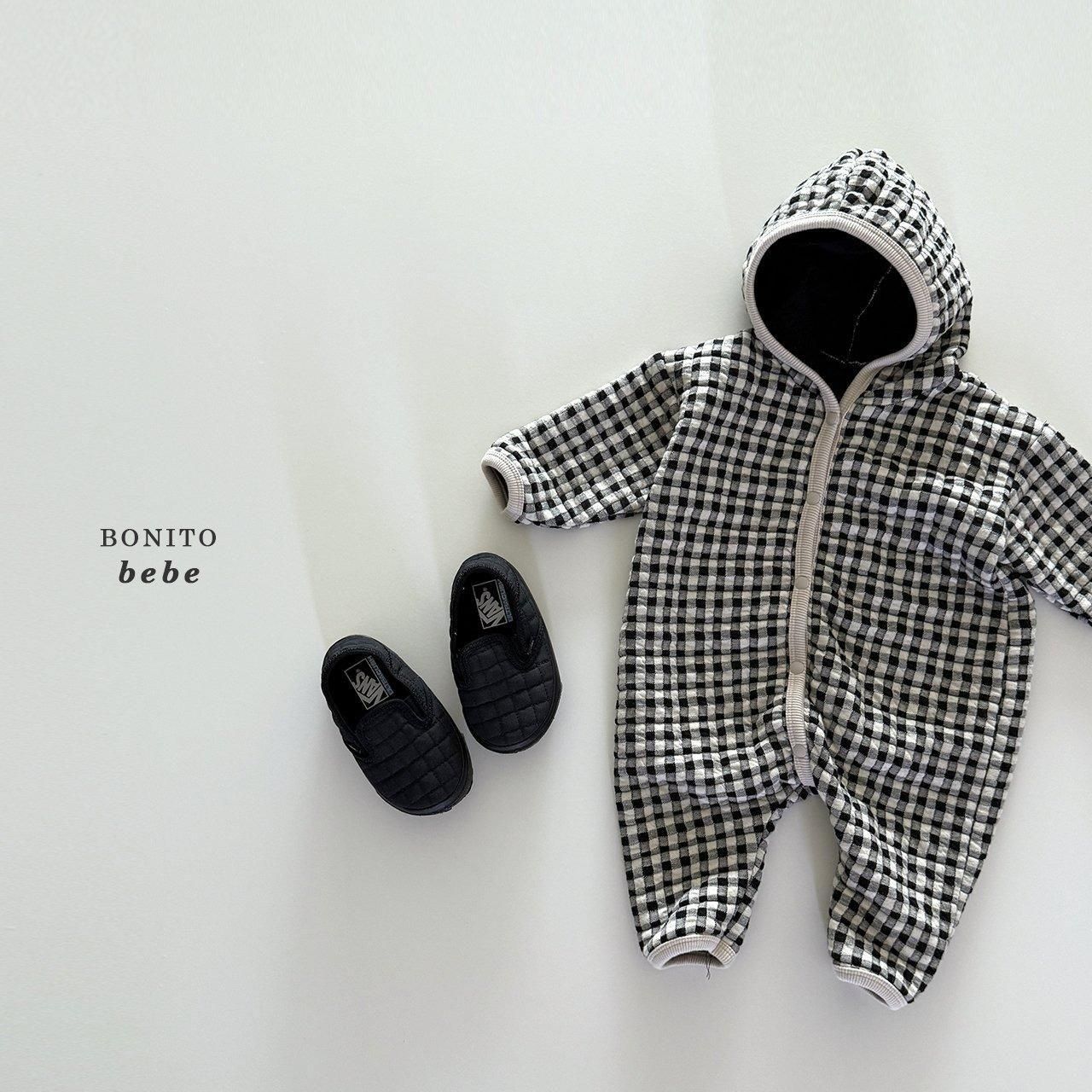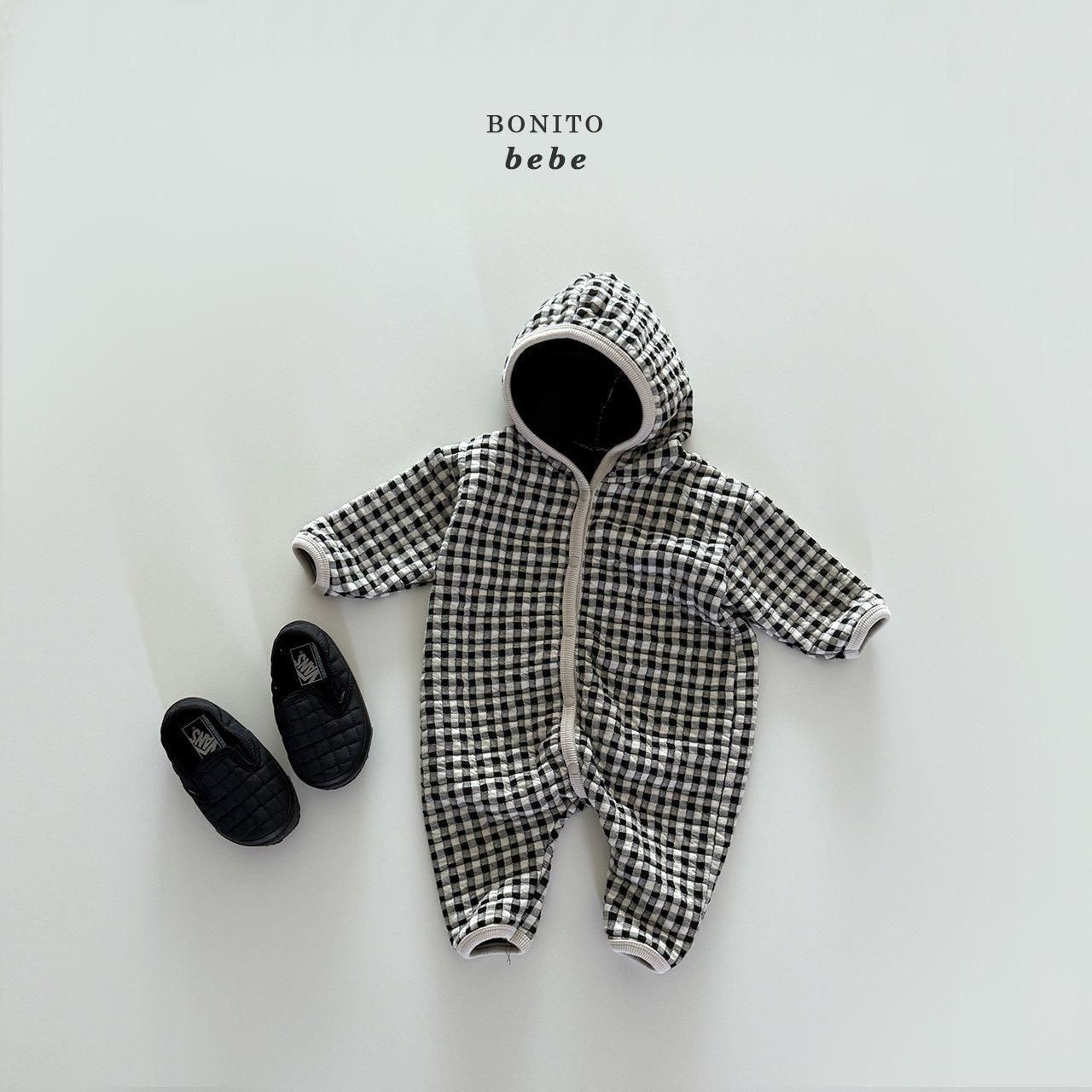 2025w1【Bonito】81:(70cm~90cm) キルティングチェックフードロンパース /* H11